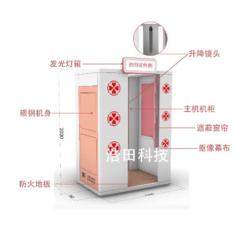 浩田自助證件照相機器,無人自助照相館,全鈑金制造、觸摸屏自助操作、可以在非常短的時間內,為客戶提供頭像采集、費用支付、照片沖印系列服務,且沖印出來的照片質量,符合國家標準,遠勝于一般文印店由打印機打印出來的相片質量。自助付費 立等可取、步驟簡單 語音引導、單反變焦 高清成像